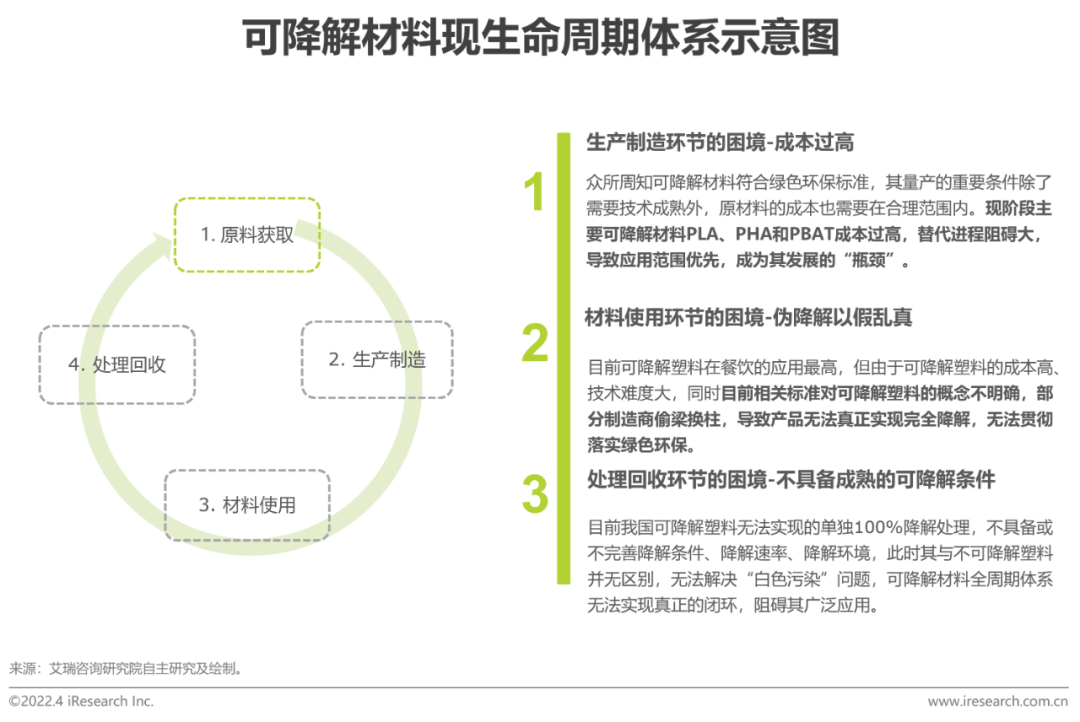 综上,生物降解材料的后端处理问题将阻碍其未来大范围推广,使得全生命周期循环效率低甚至无法实现。