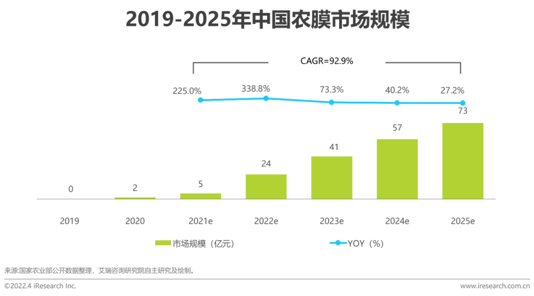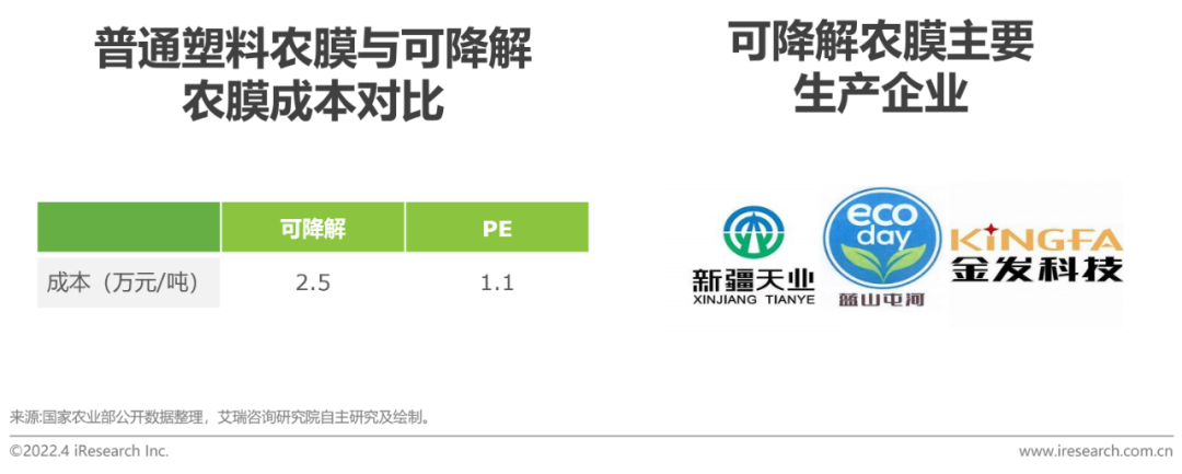 根据中国塑协农膜专委会、国家农业部的研究,未来几年内可降解农膜的推广和应用仍需依靠政策补贴,预计到2025年产能扩大、成本下降,渗透率可达15%。