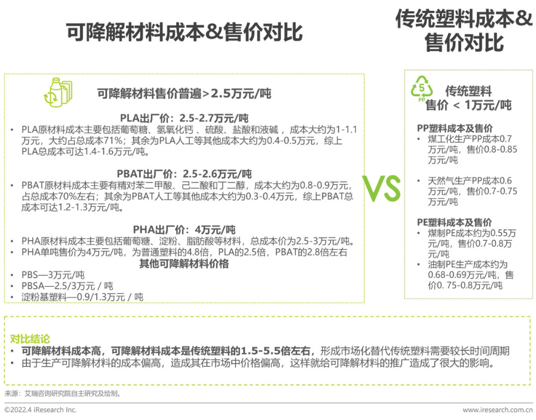 可降解材料制造成本相较于塑料成本高