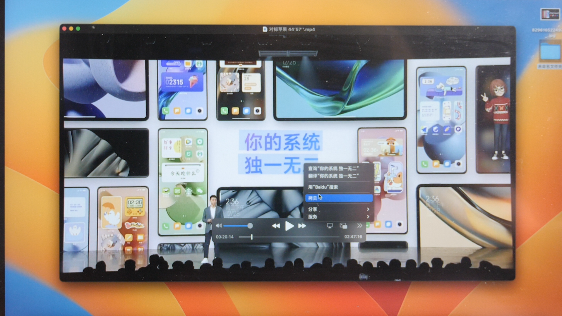 过去不论是iPhone、iPad还是Mac上,都可以对图片中的文字进行提取、复制、粘贴,而升级后的“实况文本”,支持了对于视频中的文字,在暂停时框选复制,从体验来看,比较适合上网课的同学使用。