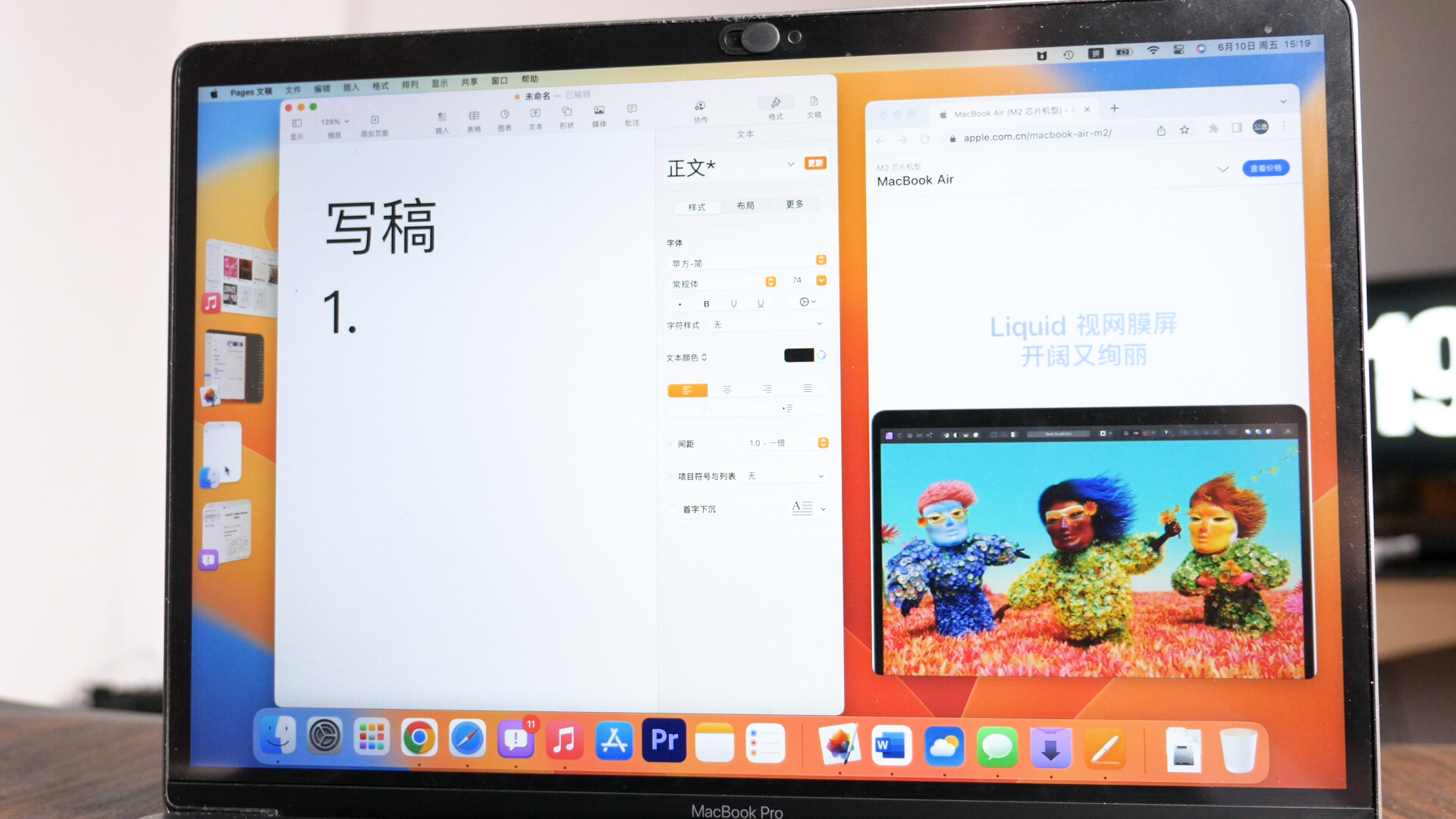 重点在于,在“台前调度”模式下,用户也可以将不同的软件变成App组,同时调整完的软件窗口大小则会被自动保存,比如我左右放置了浏览器和写作软件,组成了“写稿模式”,此外在“台前调度”状态下,点击空白处则会回到桌面。