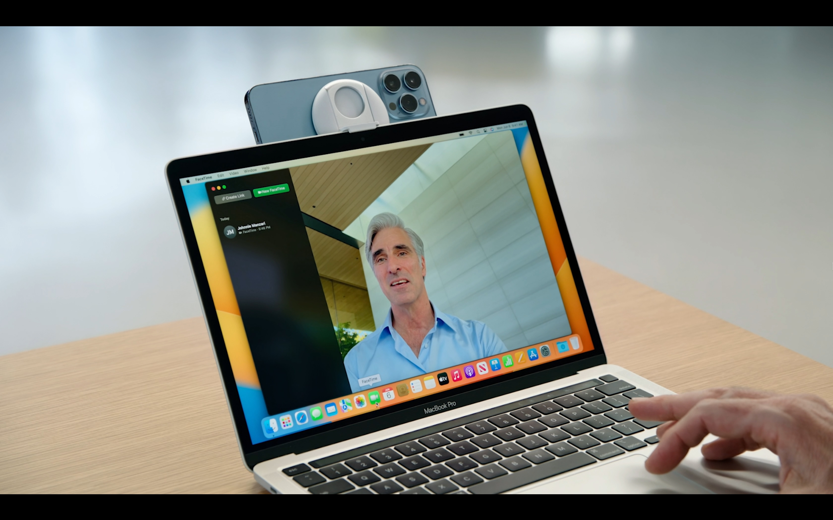 在新系统内,Mac电脑无需配对即可调用iPhone摄像头,不仅意味着更高清的画质,还代表了用户可以使用人物居中、人像模式等等iPhone的专有功能。