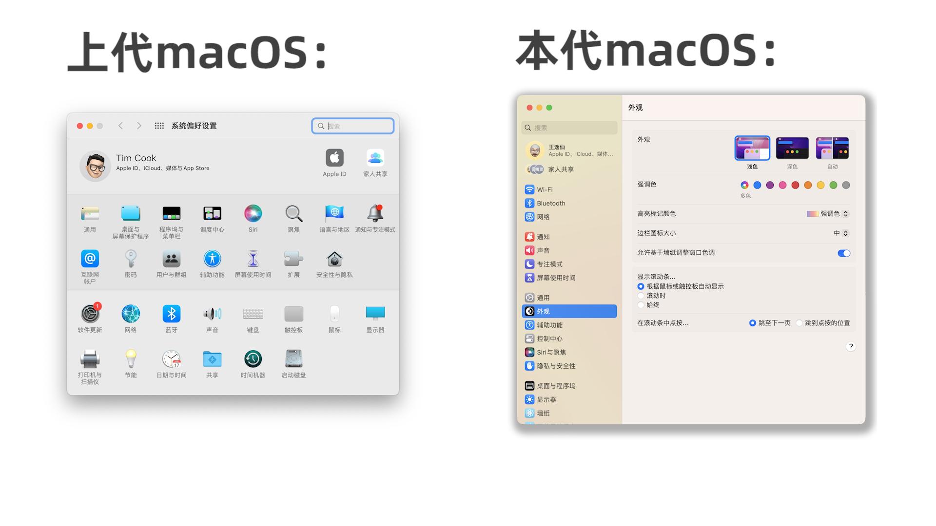 除了以上的主要升级以外,新一代macOS的系统设置,还从之前的一级展示,改为了如今的一二级并列呈现。
