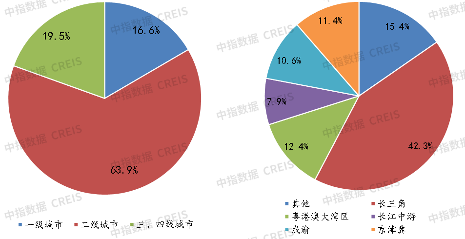 图:2022年1-5月50家代表房企拿地面积城市等级、区域分布情况