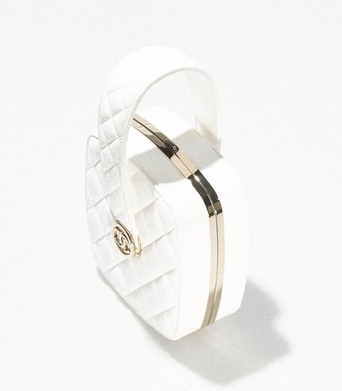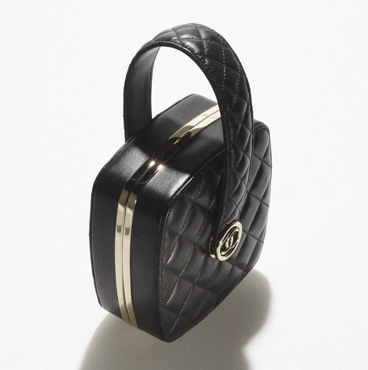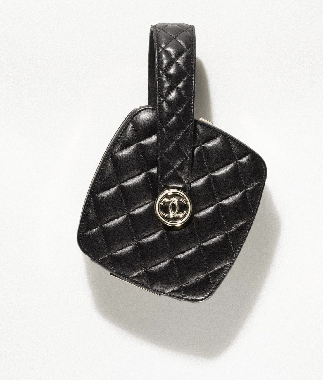 Chanel 2022春夏大秀,一款充满优雅与古典气息的晚礼服手袋Chanel Minaudière尤为吸睛。它的包身呈现圆润的正方形造型,采用菱形絎縫小羊皮材质,挺括有型,从女生补妆必备的气垫粉底盒中获取创作灵感,包袋两面中央均以一颗Chanel标志性的双C logo纽扣点缀,一条宽边皮革带将两颗纽带连接,形成一个可以360度旋转的手柄,可以单手拎着,也能挽在手腕处,设计灵巧别致。