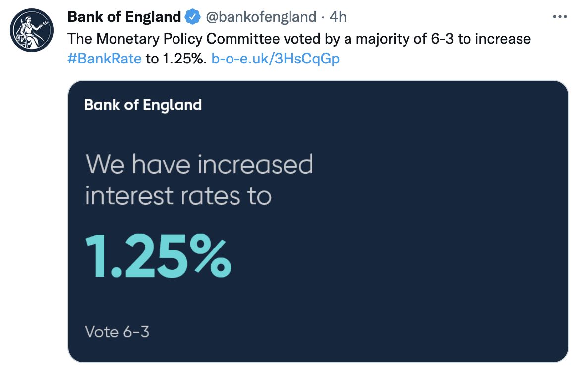 在16日的英格兰银行货币政策委员会议息会议上,九人组成的委员会六人赞成25个基点的加息幅度,剩余三人则倾向于更加激进的50个基点加息幅度。