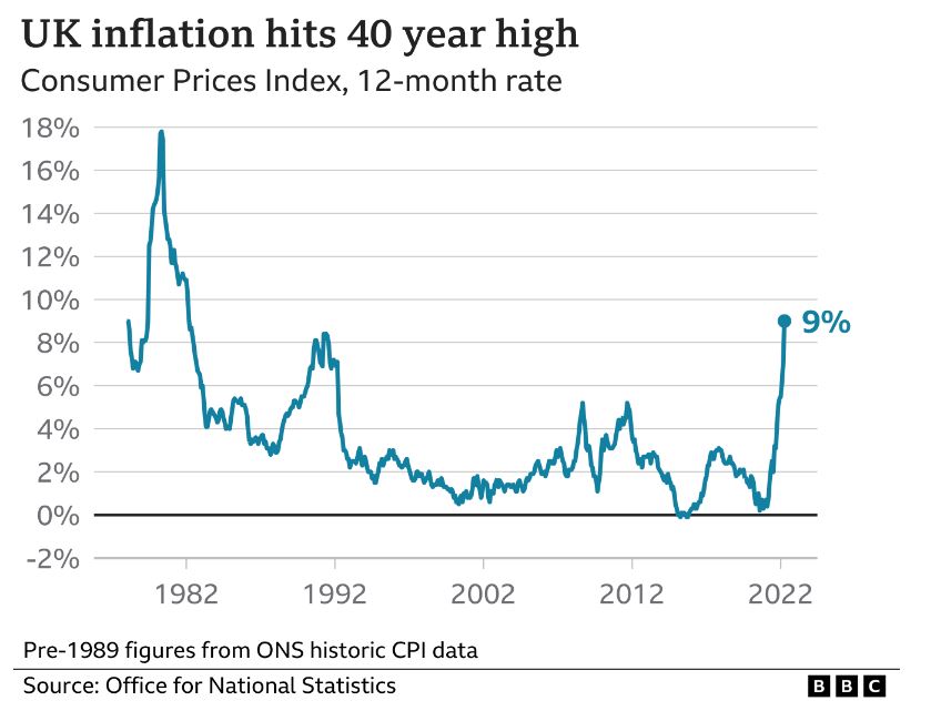 目前英国正经历着比美国更严重的通货膨胀,该国3月与4月的消费者价格指数分别为7.0%与9.0%,4月数据直接刷新了1982年以来的纪录。率先进入通胀9时代的英国,也是七国集团中物价上涨最快的国家。