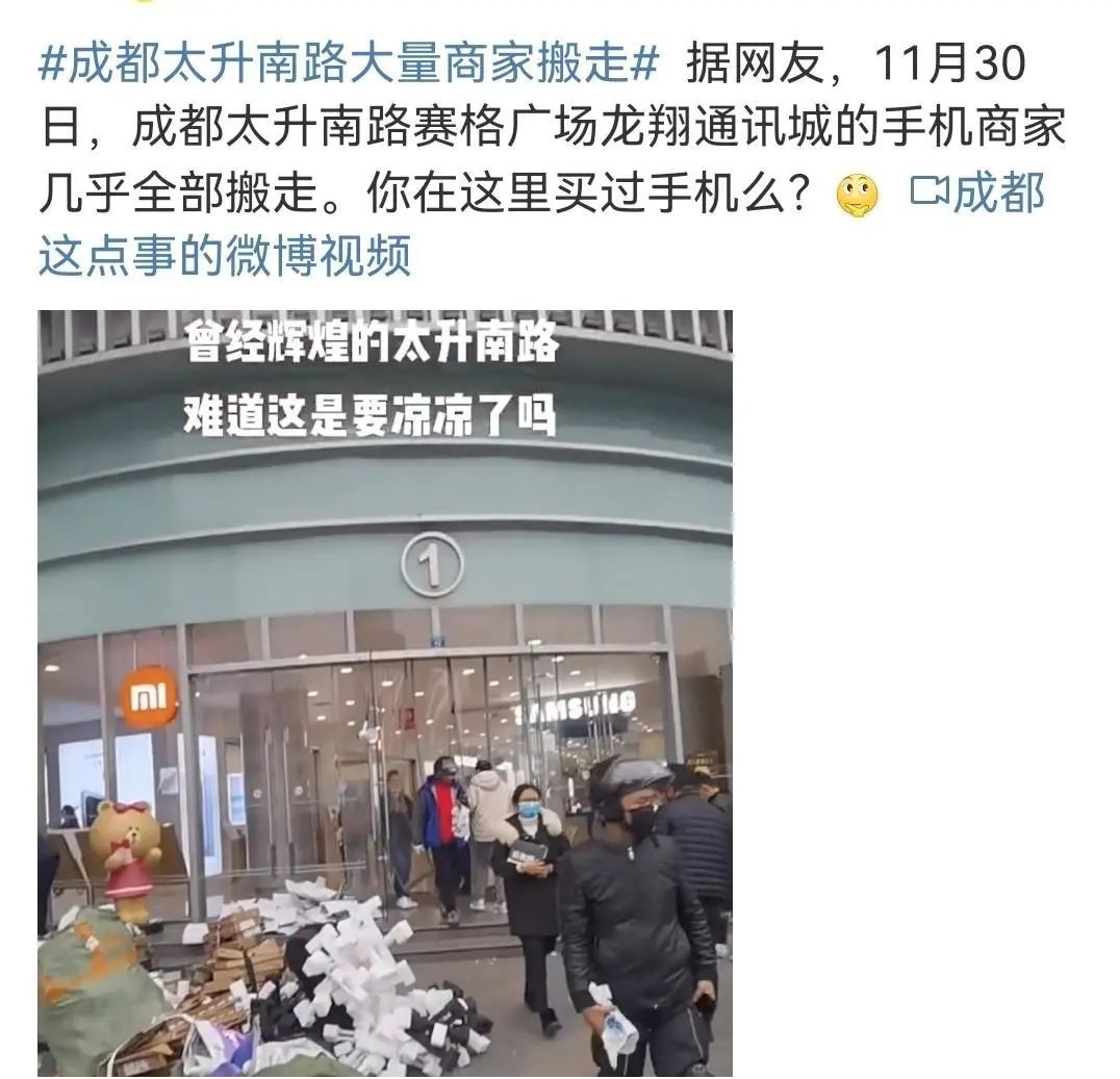 去年末,一则“成都太升南路大量商家搬走”的话题把太升南路的地标性商场“赛格广场”推上了话题热榜。