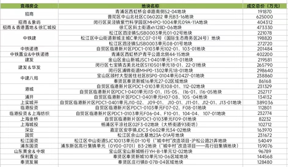 除招商外,建发和中铁建均拿地3幅;中铁诺德、港城和中建八局均拿地2幅;其余国企、央企均拿地1幅。