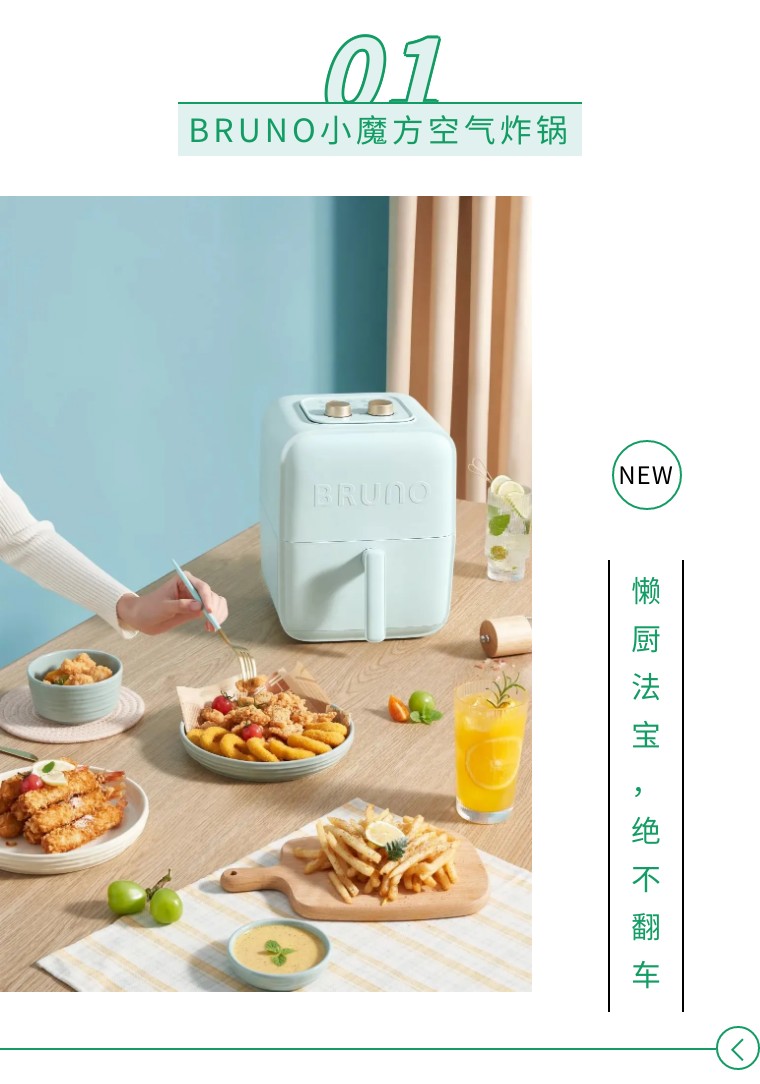 据介绍,BRUNO小魔方空气炸锅扮演了油炸锅、炒锅、烤箱等多个角色。它一共就两个旋钮,一个负责温度,一个负责时间,只要把食材往锅里“一扔”,“一转”旋钮便不用再管。年轻人在家里拿着食谱和食材,纷纷复刻着快餐巨头的看家菜,更有人让火锅和奶茶也“炸"了起来,“厨房小白”秒变“厨神”。