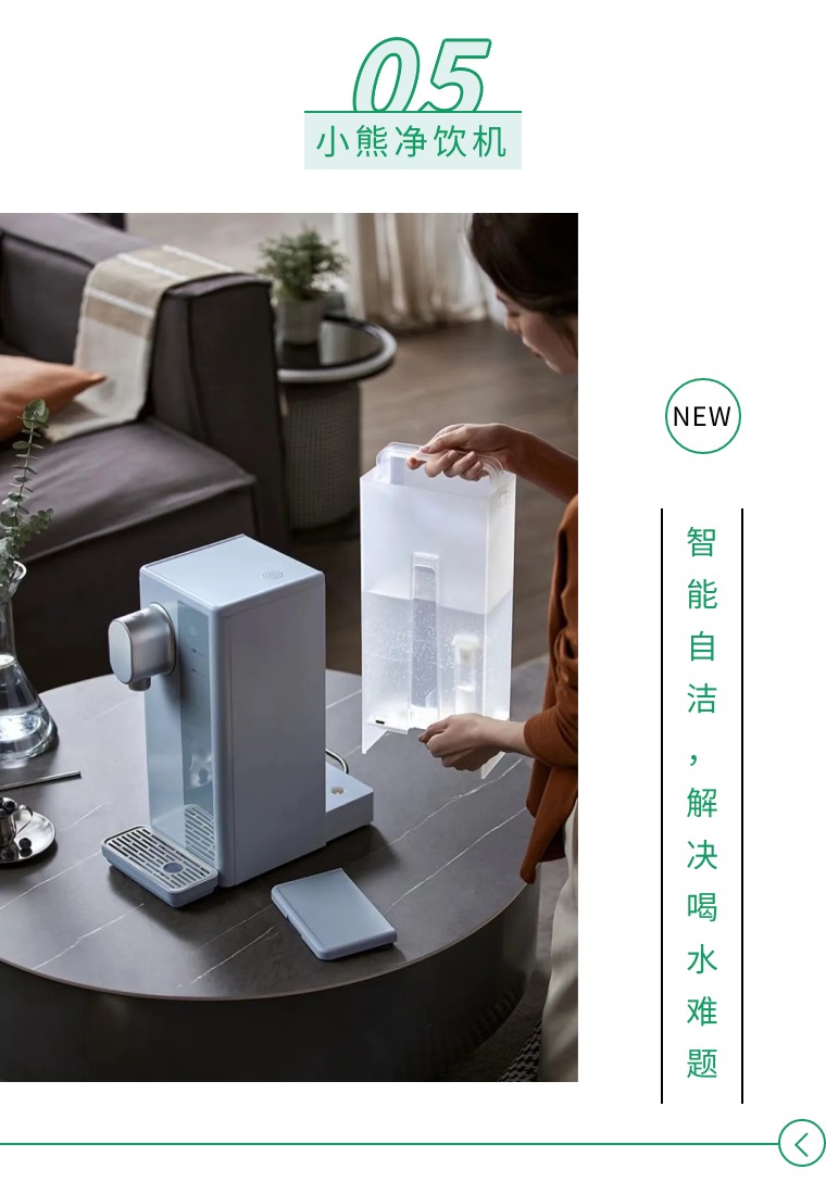 作为创意小家电品牌,从最早出圈的养生壶、电炖盅、酸奶机和电饭盒等产品开始,小熊电器便以满足年轻人特定需求和价格优势赢得不少口碑。在年轻人种草的厨房里,一台净饮机十分有必要。