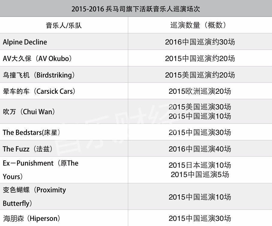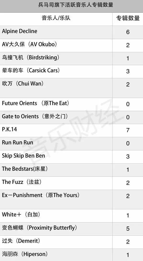 注:个别音乐人的部分唱片是在签约兵马司之前发布的