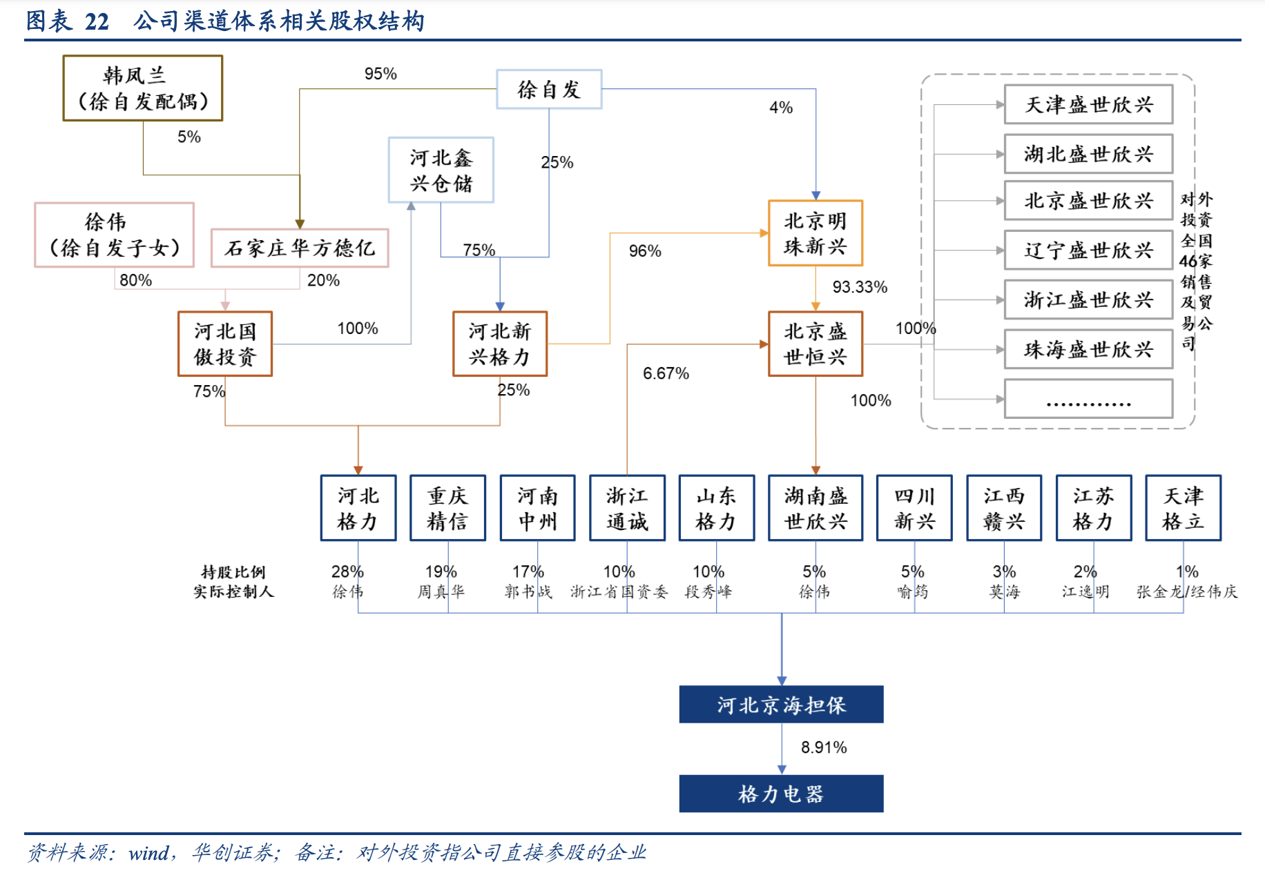 京海互联背后,是格力电器与经销商牢牢绑定的销售体系。根据2019年华创证券研报,格力电器的经销体系大致为:26家区域性销售公司——代理商——经销商。这些区域性销售公司即“省级代理”的角色,笼络旗下的各经销商形成利益共同体,平衡及绑定经销商利益关系,从而减少经销体系的恶性竞争,实现公司和经销商共赢。