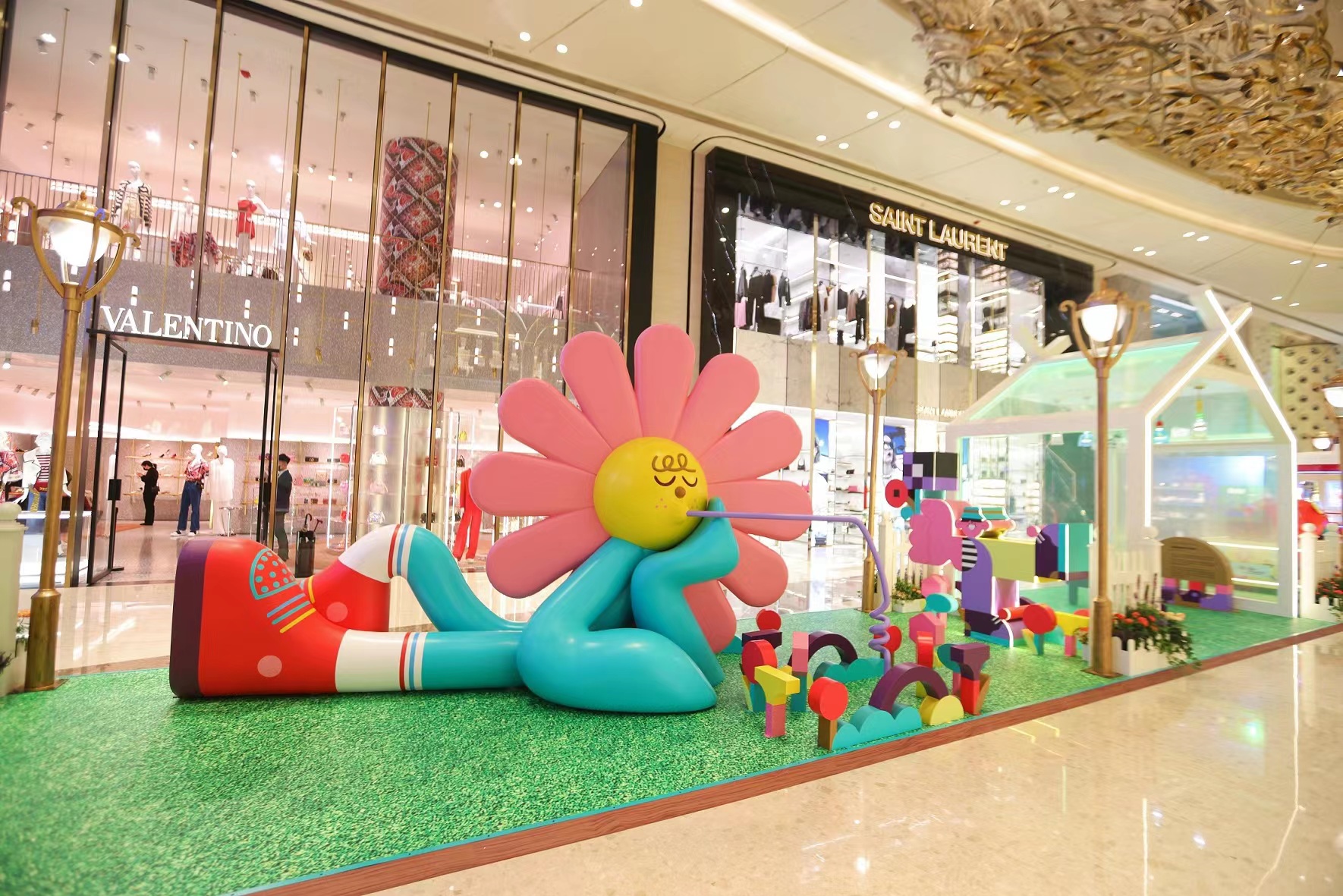 【潮趣雕塑花园】大型波普雕塑“太阳花先生”正悠闲惬意的侧躺于草坪的立体花圃旁,喝着沁人心脾的饮品等你邂逅,面带笑意地召唤您一同参与阳光下的露营世界。逗趣的“樱桃小姐”乘坐缤纷闪耀的电车,满载着的波普艺术专列缓缓驶入。在拍照的阳光男孩正站在繁花似锦的立体花圃里赏花,感受花团锦簇的美好景象。顾客穿梭其中,宛若漫步于秘境花园,纵享春光灿烂。