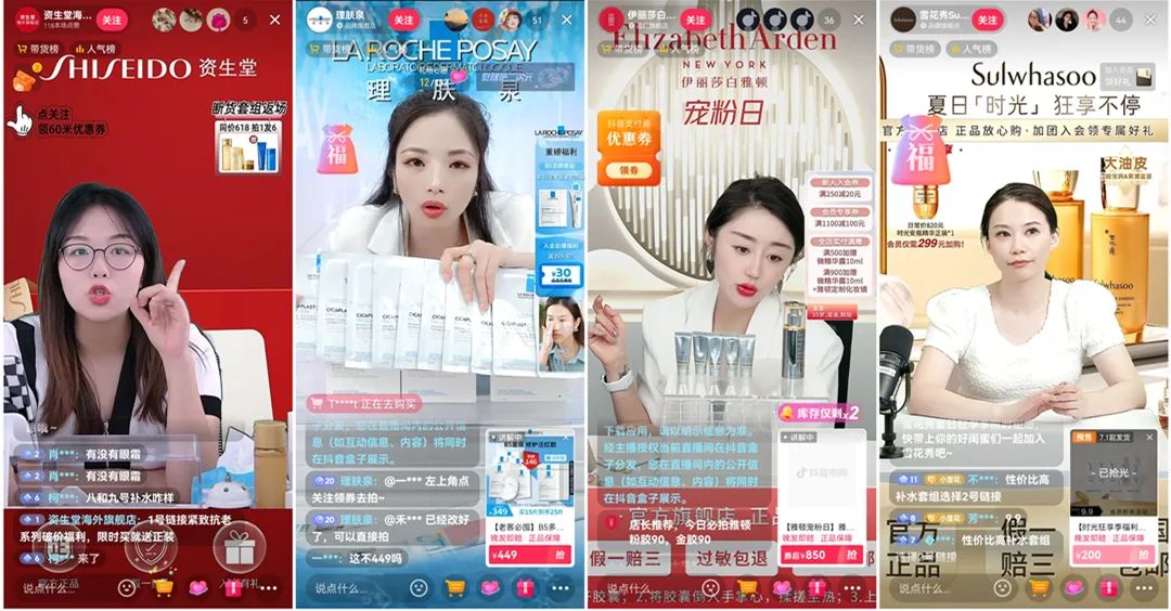 据聚美丽不完全统计,目前欧莱雅旗下的巴黎欧莱雅、理肤泉、美宝莲、适乐肤,宝洁旗下的OLAY、FAB,以及雅漾、Ulike、资生堂、奥伦纳素、德玛贝尔DERMABELL、Aekyung爱敬、雪花秀、伊丽莎白雅顿、安热沙等诸多我们耳熟能详的国际品牌,都已经入驻了抖音电商,且大部分都在抖音开启了常态化的自播。