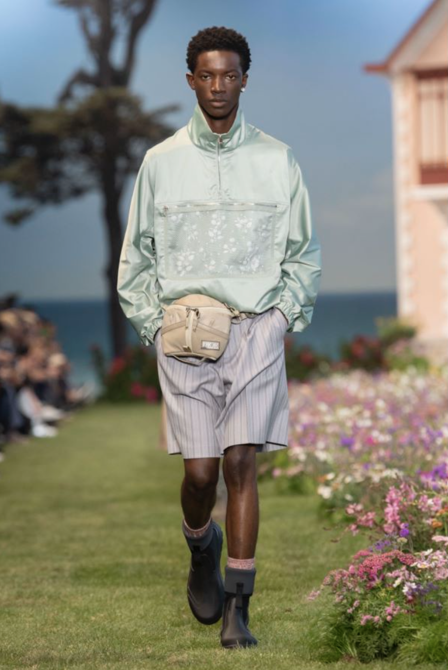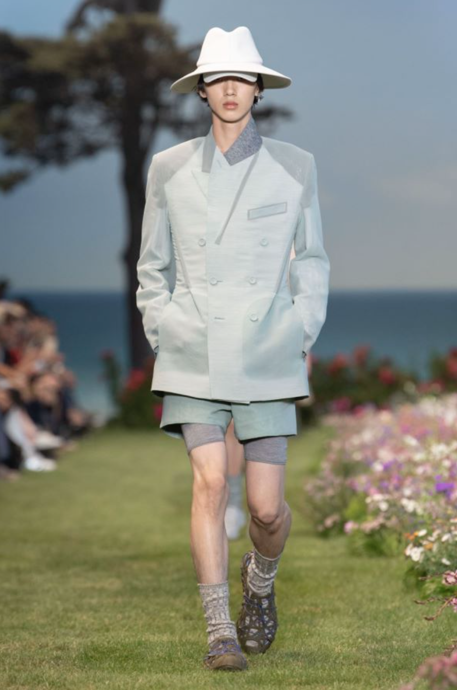 本次,迪奥男装艺术总监金•琼斯续写自2022冬季系列开启的跨时空对话。灵感源自不断推移的时空、光影更替的季节:从经典迪奥灰、淡粉色及海滨花园之中的层叠渐变绿色和蓝色,展现自然与光线的万千变化。正装与休闲兼容并蓄。