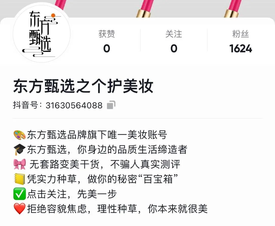 近日,东方甄选又有了新动作——在抖音上线了新账号“东方甄选之个护美妆”,作为东方甄选旗下唯一美妆账号。目前,美妆品类在东方甄选直播间的占比仅5%,开播以来总销售额约1000万,而这个美妆账号或将承接上主直播间的流量,在美妆个护带货上发力。