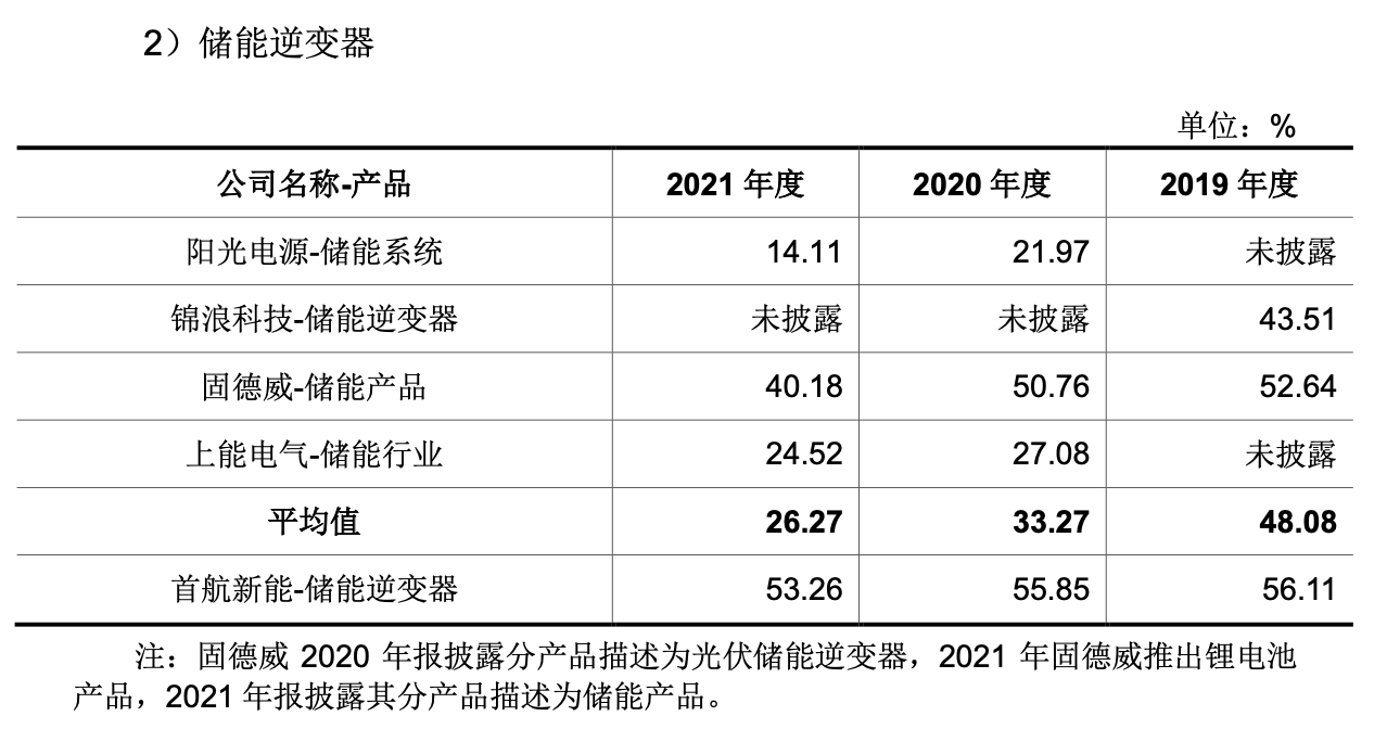 而从盈利能力来看,首航新能并网逆变器、储能逆变器的毛利率在同行中表现不错,公司均表示,其主要原因系报告期内该产品以境外销售为主,其中并网逆变器境外销售占比高于同行。另外2021年受到大宗原材料价格上升和全球疫情等因素影响,主要原材料不同程度的涨价也导致两种产品的毛利率出现下滑。