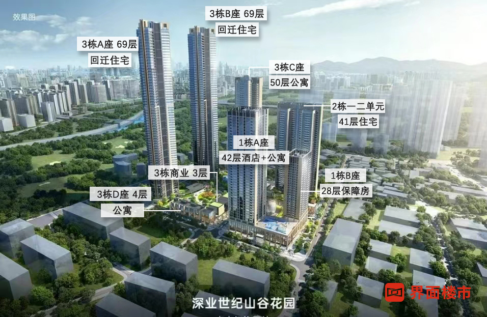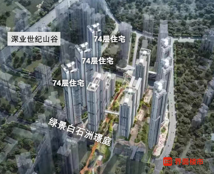 值得注意的是,早在5月30日,深业世纪山谷就已全面封顶。这一项目封顶,也意味着“深圳最高住宅”的高度又再刷新至252米,带来两栋高达69层的住宅楼。