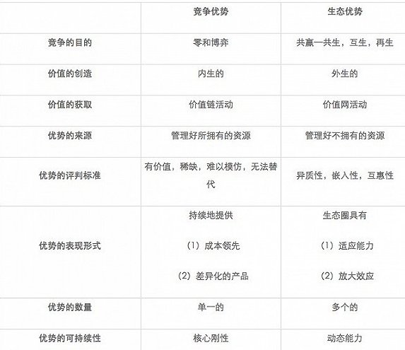 竞争优势与生态优势是相辅相成的:竞争优势是维系生态优势的基础;生态优势是放大竞争优势的系统。