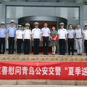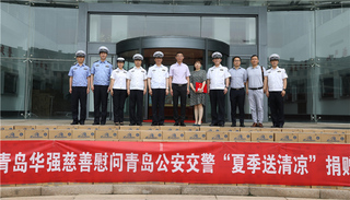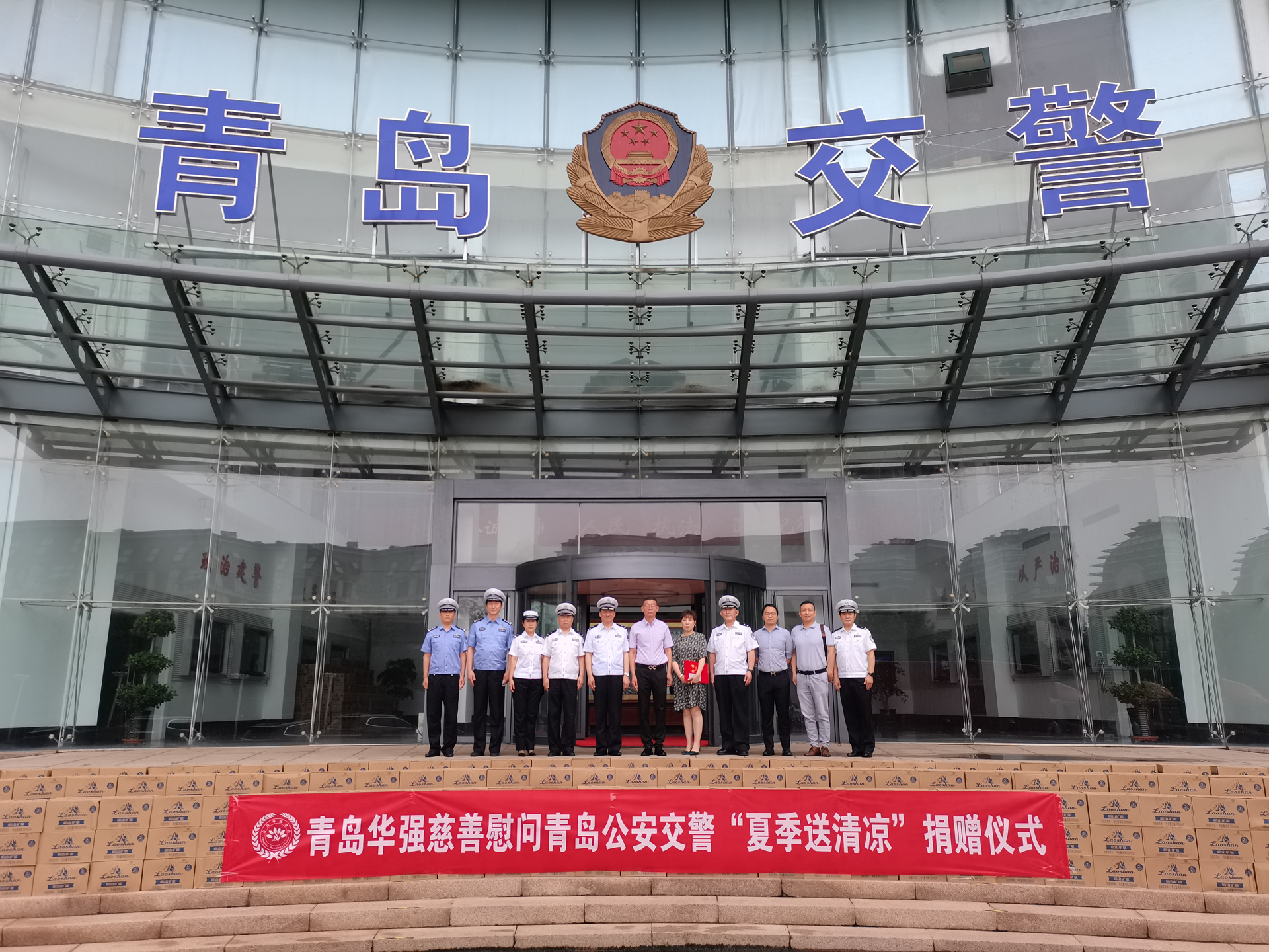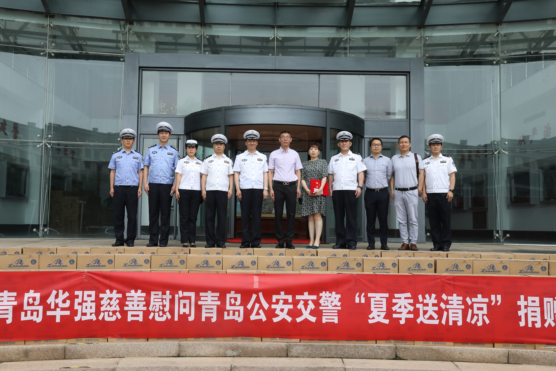 现场,公安交警双方战略合作签约仪式后,青岛华强慈善慰问青岛公安交警“夏季送清凉”捐赠仪式同步举行,青岛华强慈善向全巿一线交警捐赠800箱矿泉水,向维护交通安全一线的交警表示崇高的敬意。