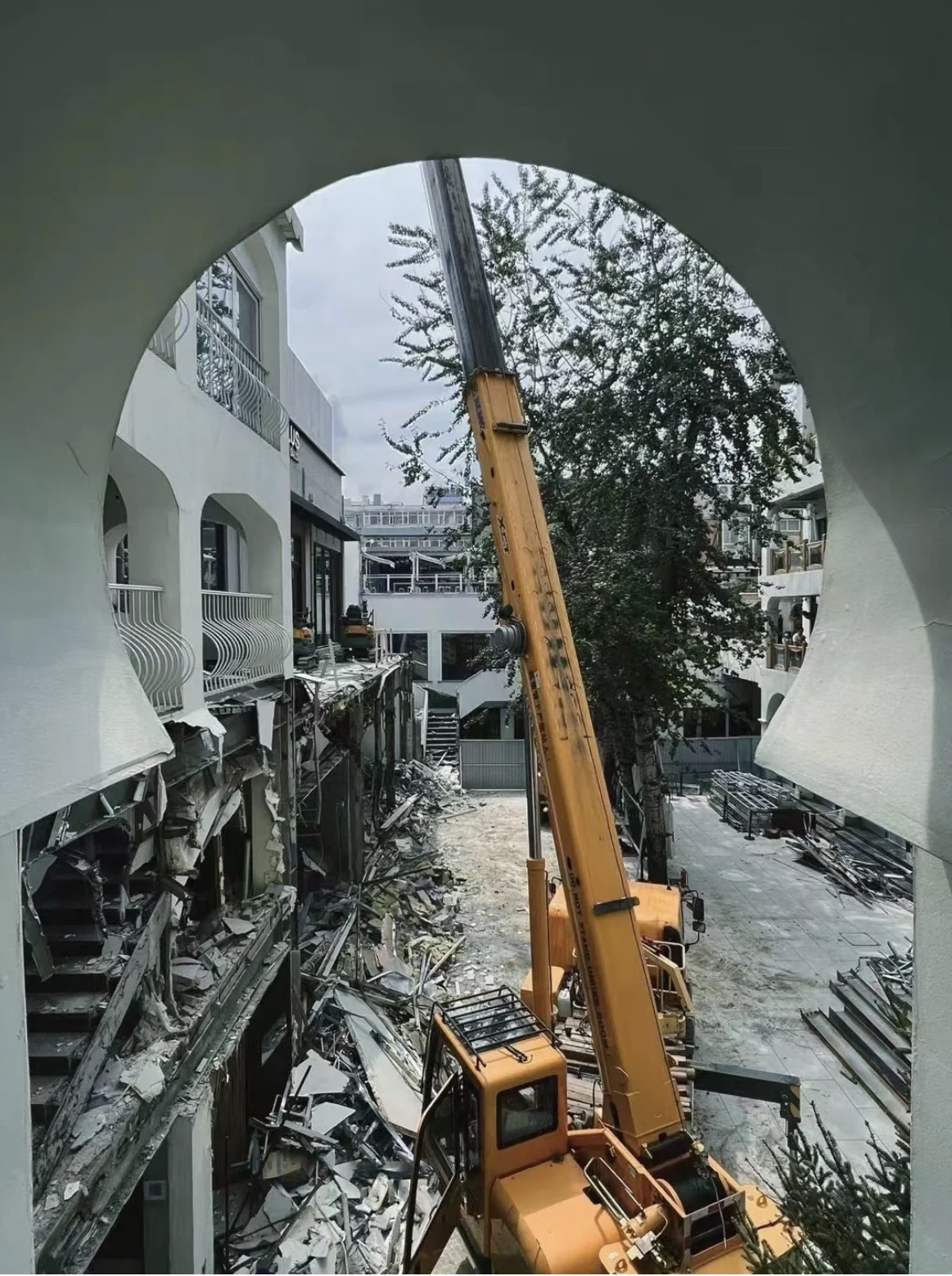“2022年6月30日,那里没有花园了。”有网友在微博上发出这样的感叹,同时配有一栋白色建筑正在被拆除的图片,巨大的黄色工具车进入,周围已经满是被拆除的碎片和瓦砾。