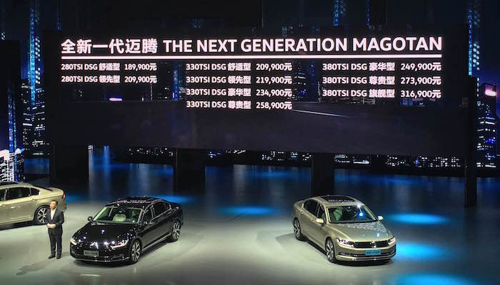 2016年7月27日,一汽大众全新迈腾正式上市。此次,全新迈腾换装了大众第三代EA888系列发动机,除1.8TSI和2.0TSI发动机以外,还会提供1.4TSI(EA211)发动机,传动系统匹配7速双离合变速箱,新车将推出1.4T、1.8T、2.0T三种排量共9款车型,官方指导价为:18.99-31.69万元。