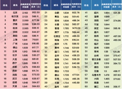 因道路施工以及较大幅度的降雨而拥堵指数上升的还有重庆。排在重庆身后的济南虽从上一季第一名降至目前的第四名,但高峰拥堵延时指数与上一季度变化不大,拥堵依然严重。首次进入前十的城市佛山,也因降雨,拥堵加重14%,排名大涨16位。