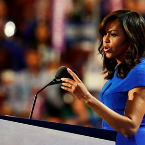 米歇尔在民主党全国代表大会(Democratic National Convention, DNC)上演讲,为希拉里背书,激昂慷慨、气场十足、极富感染力。演讲从她自己的两个女儿出发,始终围绕人性最柔软的话题,孩子。