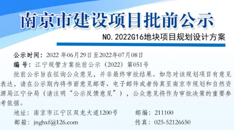 据南京规划和自然资源局官网显示,方山南G16地块规划设计方案出炉。