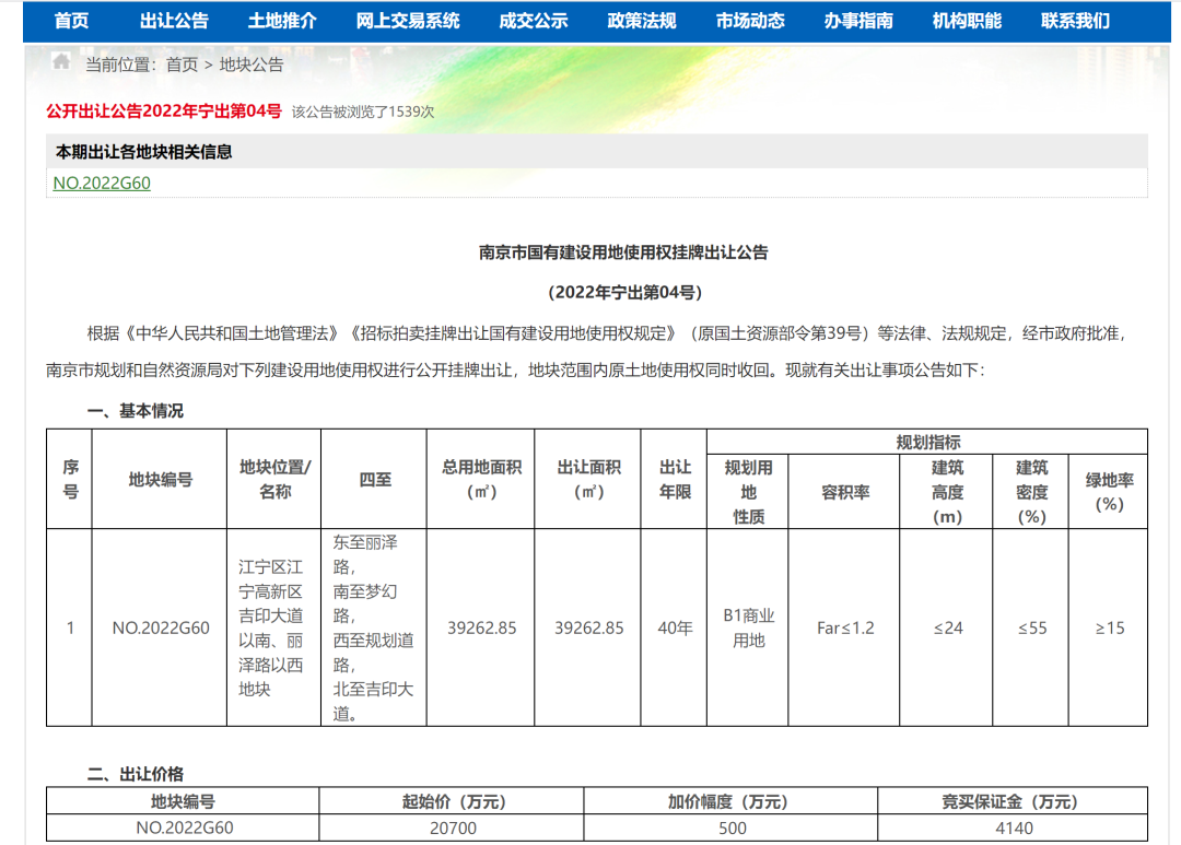 (5)竞得人须在签订土地出让合同前与江宁区人民政府签订《投资发展监管协议》,并接受江宁高新区管委会的全程监管。