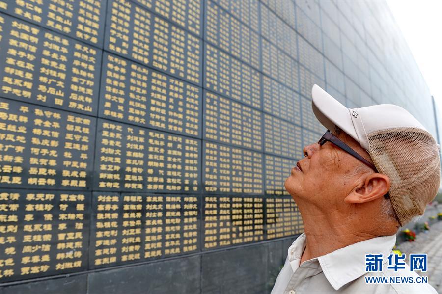 7月23日,李升堂在唐山抗震纪念墙前哀悼逝者。