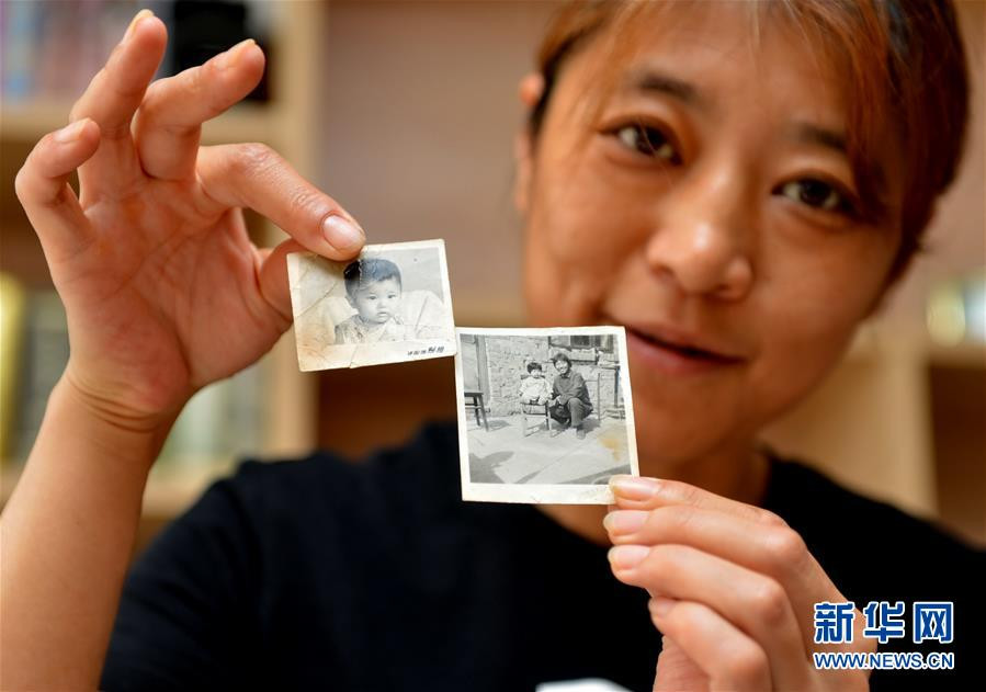 7月24日,“地震婴儿”孙沪在家中展示她小时候的照片。