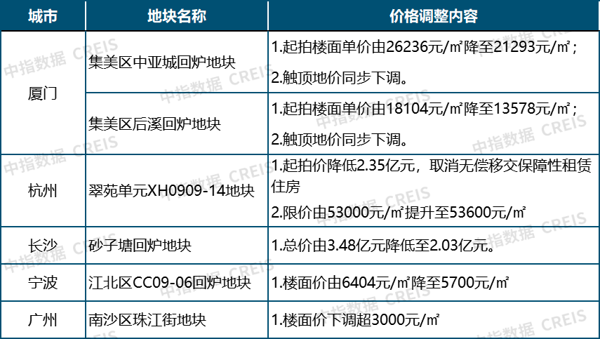 1. 优质地块放量,部分核心城市主城区推地规模占比提升,多宗回炉地块下调起始价