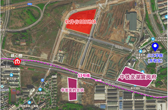 G05地块邻近地铁S3号线铁心桥站,附近还有数字大道、花神大道、绕城公路等城市主干道,该地块周边有华发美的云筑和中铁龙湖宸阅府,该地块不仅在体量上比这两个项目大一些,毛坯限价也要比这两个项目高出500元/㎡。