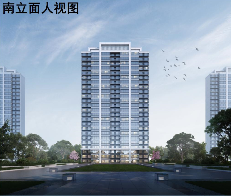另外从效果图看出,楼栋之间都有高低错落的景观树围绕,整体绿化也不错。