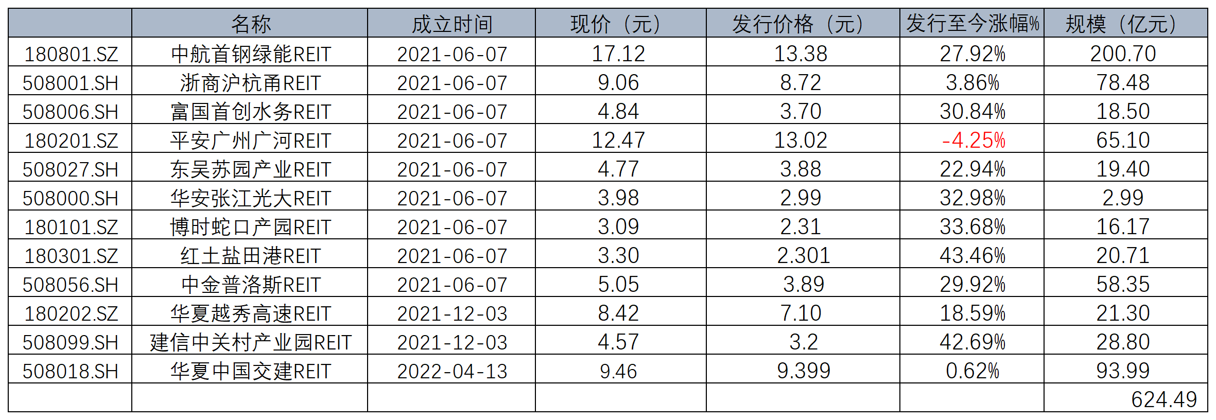 截至目前,已经有14只REIT项目获得审批,除了国金中国铁建REIT、鹏华深圳能源REIT刚刚结束募集外,其余12只REITs项目已经上市。
