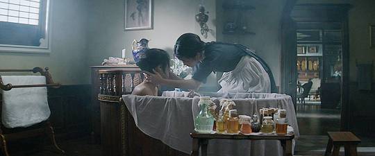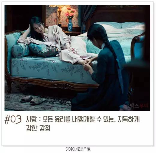 但是,说到对情欲的描绘、情色氛围的烘托、那些暧昧的场面,《小姐》是非常出众的。这其中有很多想象中的欲望,是偏东方的含蓄,它虽然没有那么暴露,但是同样可以勾起人的欲望。