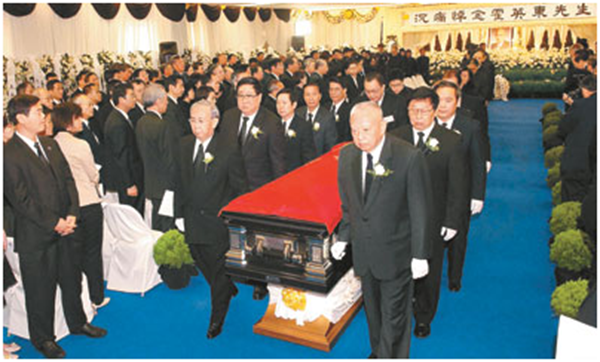 2006年10月28日,霍英东因病在北京逝世,政府有关部门参与操办其葬礼,以高规格送别了这位爱港爱国的企业家。遗体返港期间,霍英东的灵柩覆盖着中华人民共和国国旗,并由十人扶灵,董建华、何鸿燊、李兆基等均在其列。有评论称,霍英东在“国葬”的级别中告别。