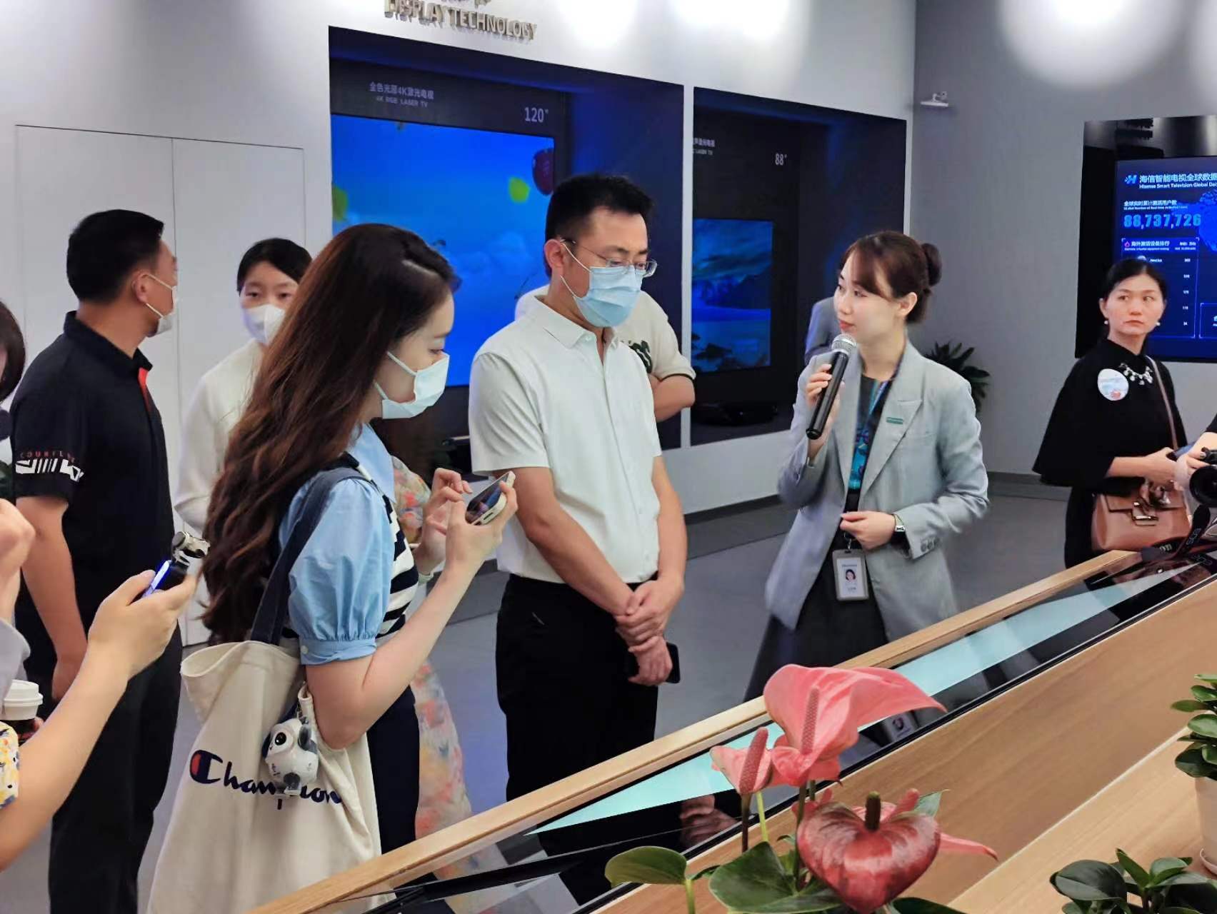 7月7日,青岛市委网信办组织开展“见证青岛实体经济”新媒体、网络天团集中采访活动,20余位新媒体记者、网络天团成员一起走进海信集团,探访海信集团自主创新、以先进制造不断推动实体经济高质量发展的故事。通过参观海信研发创新馆、海信智能交通体验馆、海信智慧新生活体验馆,深入了解一个立体的、全方位的科技海信,也感受海信与青岛这座城市相互成就、共同成长的历程。