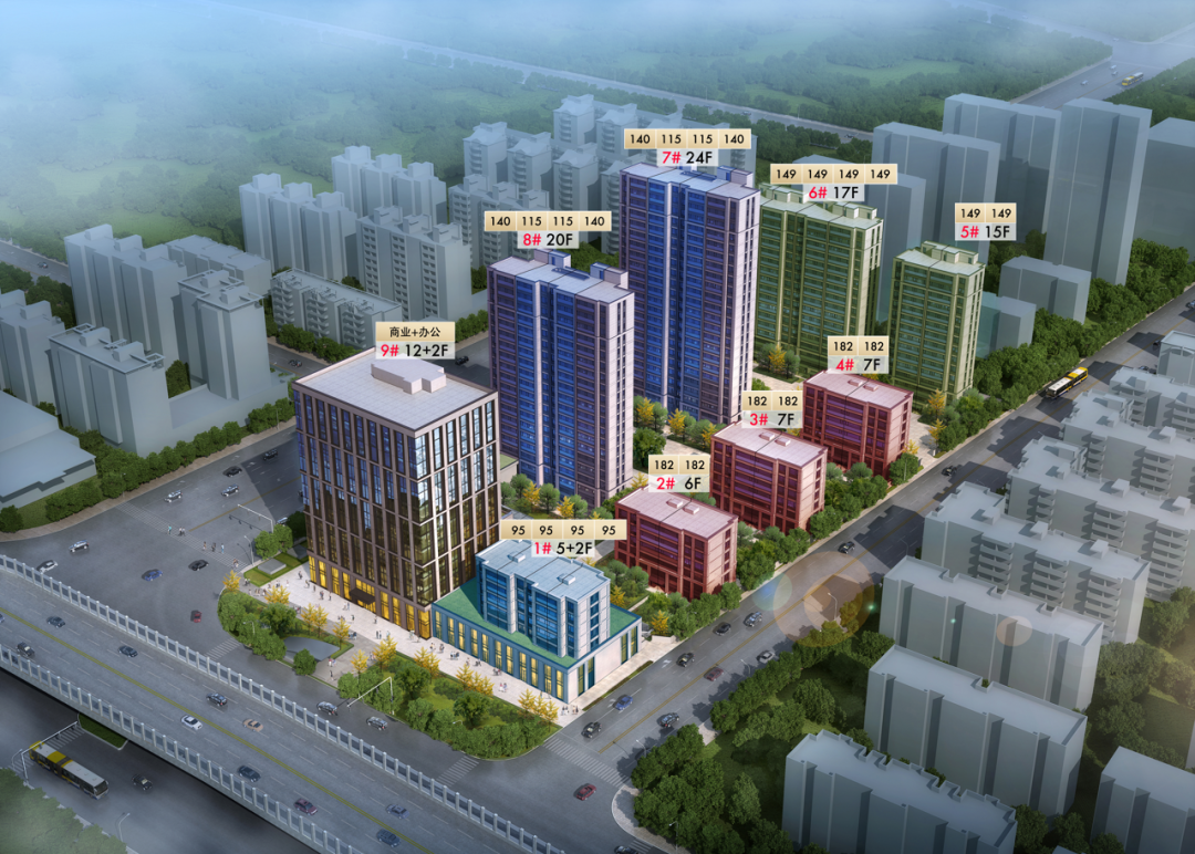 根据规划,项目拟建8栋住宅,包含5栋6-15F的花园洋房,4栋15-24F的高层住宅以及1栋14F的酒店,户型建筑面积约95、115、140、149、 180㎡。