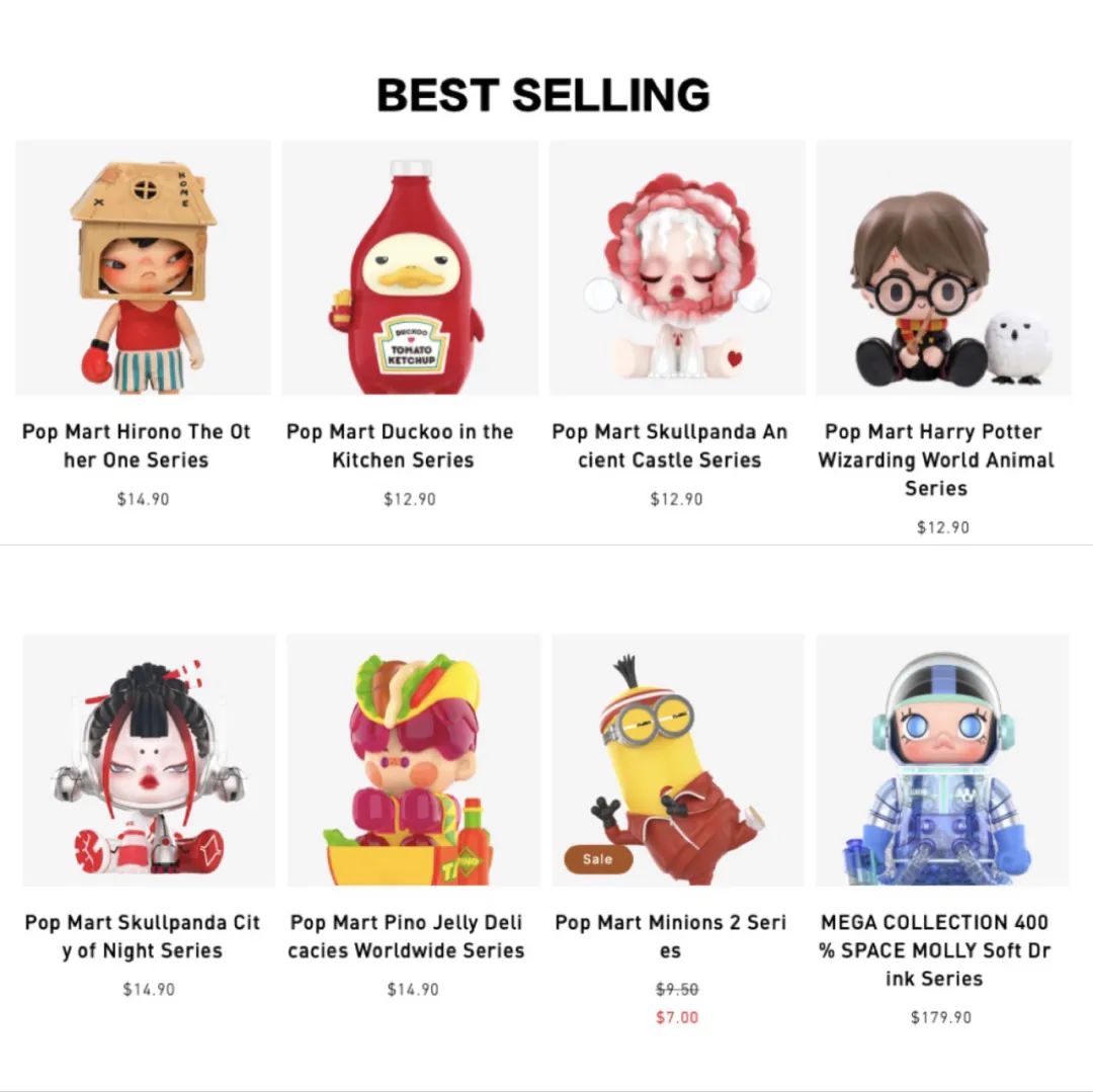 泡泡玛特海外官方店上的普通畅销款多数售价在15美元左右
