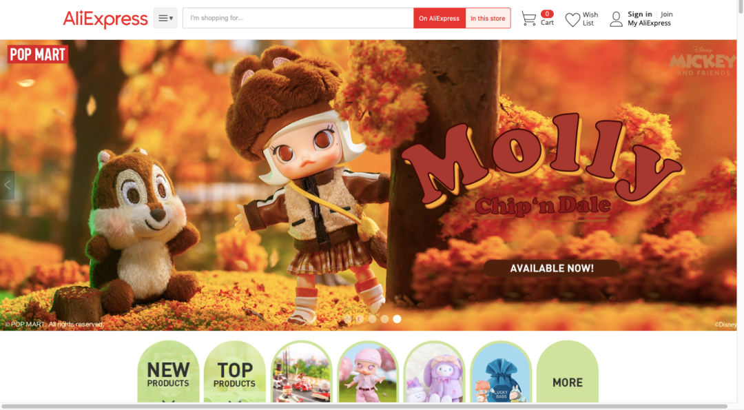 其次,线上电商加速布局。泡泡玛特自2019年起就先后入驻主流跨境电商速卖通、亚马逊平台、Shopee平台;同时为了提高渠道自主性及更快打出自身品牌知名度,泡泡玛特还通过官网上的自建站进行销售。另一个潮玩头部品牌52TOYS也在2020年入驻日本亚马逊,并迅速打开了日本市场。