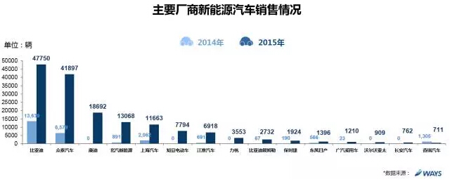 2015年是新能源汽车蓬勃发展的一年,零售量由2014年的2.6万辆增至16.1万辆,同比上涨超过6倍,表现十分抢眼。随着新能源汽车销量的快速攀升,新能源市场受到了越来越高的关注,更有厂商以及品牌陆续宣布进入新能源汽车市场的计划,准备一展拳脚,打下一片新天地。