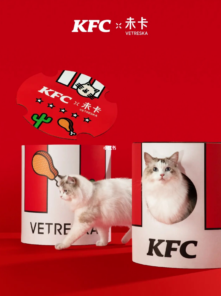 上有敞篷窝,下有钻钻洞———这是肯德基和宠物品牌“未卡”近期推出的联名猫窝。