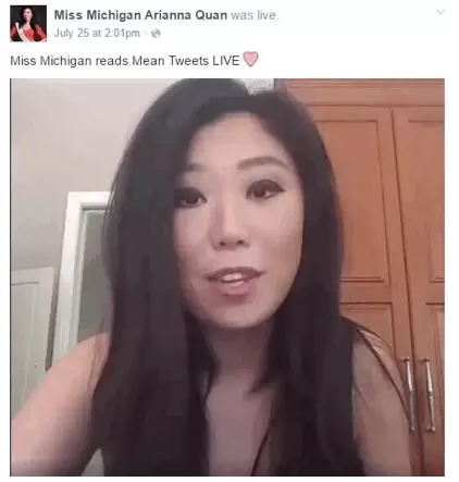 23岁的华裔全安琪(AriannaQuan)北京出生,6岁赴美,14岁入美籍。显然安琪的彰显绝对谈不中国人眼里的典型美女,没有大眼睛白皮肤,身材不算好,轮廓也不清晰。但她才华横溢,阳光自信,获得密西根小姐殊荣之后,在Facebook上收获了一大批老美支持者!!