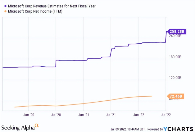生产力套件包括 Microsoft Office 365,截至 2022 年第一季度,该软件拥有约3.45 亿个付费席位。这比 2020 年初的 2 亿个付费席位增长了 72%。