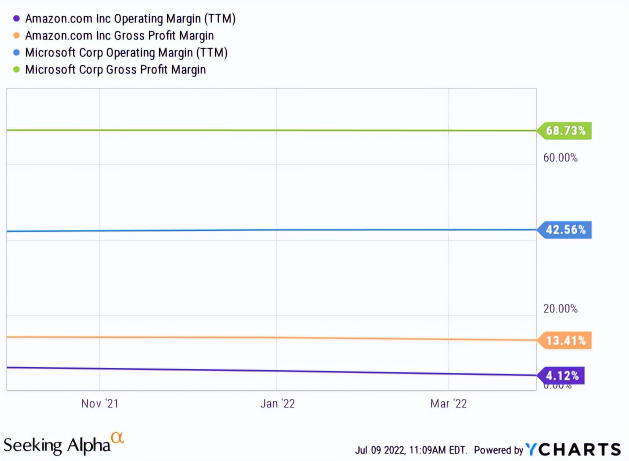 微软的远期市盈率也为 25,低于 2020 年的历史水平。该公司的利润率也远高于亚马逊,在我看来,这证明了这种商业模式的质量。