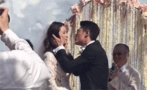 (霍建)华说:“认识你这么久,从以前能跟你当朋友,就是我觉得很幸运的事情,现在我们成为夫妻,这是我更幸运的事情,未来会有很多的事情可能会有风风雨雨,会有很多很多的状况考验着我们,我希望我们可以同心协力,一起牵手、一起共同努力面对未来的生活,我爱你。”