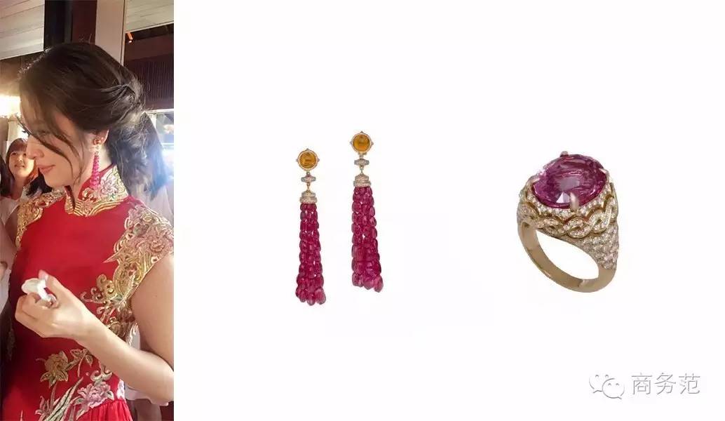 中式造型这套,Color Treasures华彩之源高级珠宝系列的流苏耳环约合RMB115万;高级珠宝系列的红色尖晶石的主石有12.75克拉那么大~价值约RMB87.6万。